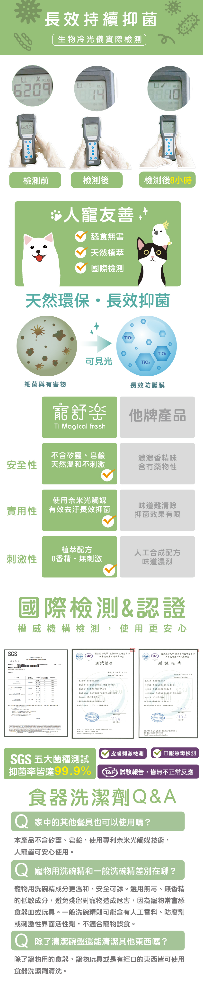 ❥ 水性奈米光觸媒配方,長效抑菌。