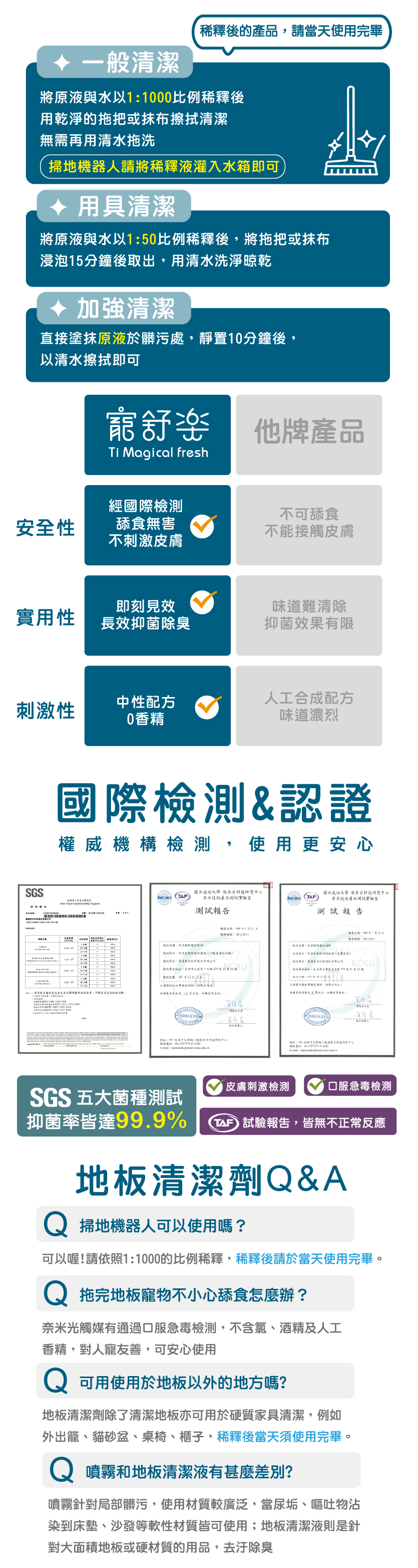 SGS五大菌種測試通過 │ 天然配方 │ 0酒精 │ 0香精 │ 0防腐劑