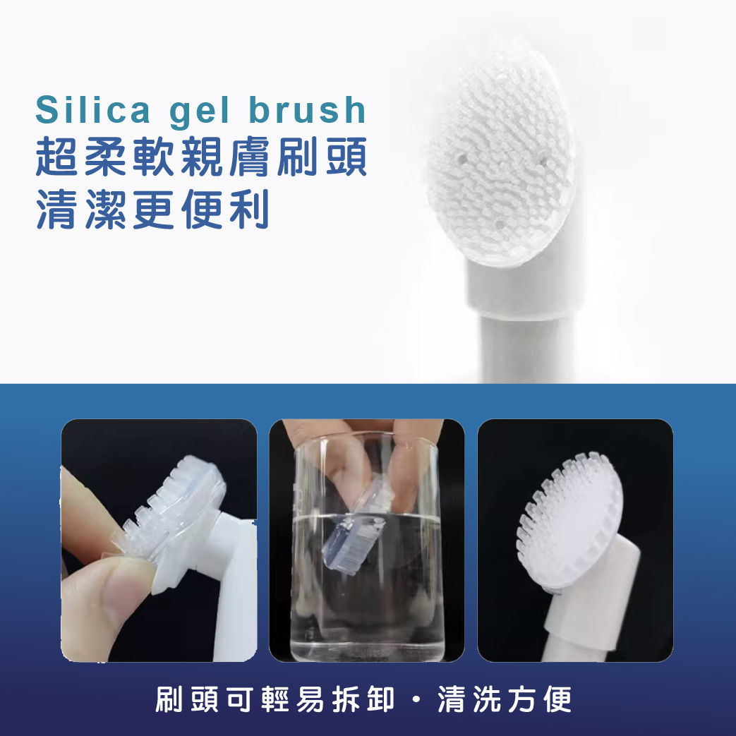 輕柔矽膠刷頭:按摩同時深層清潔,不拉扯毛髮
